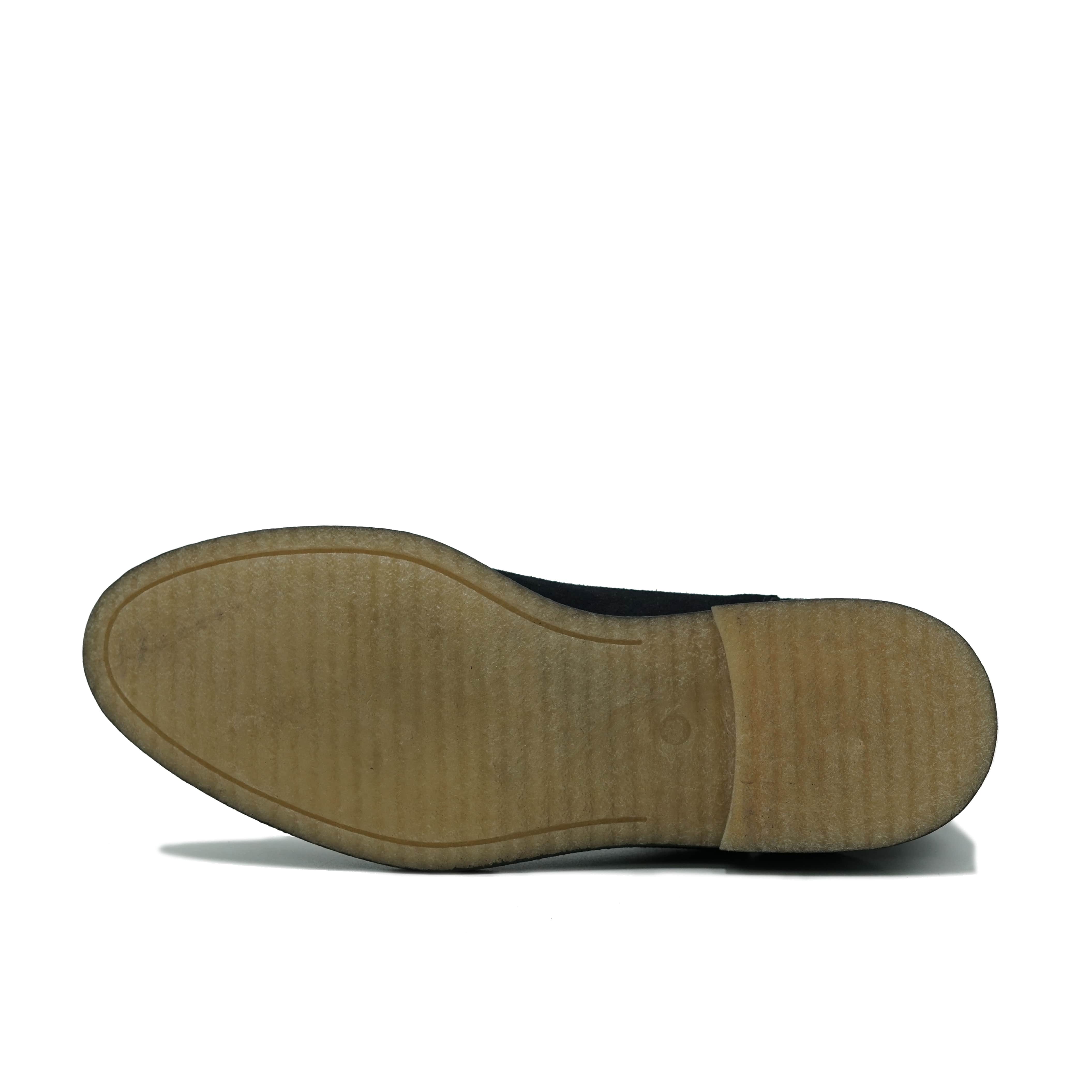 Il sottopiede è in pelle e la suola è in gomma crepe. La gomma naturale ha proprietà eccellenti quali: resistenza all'abrasione, alta elasticità, alta resistenza all'acqua.