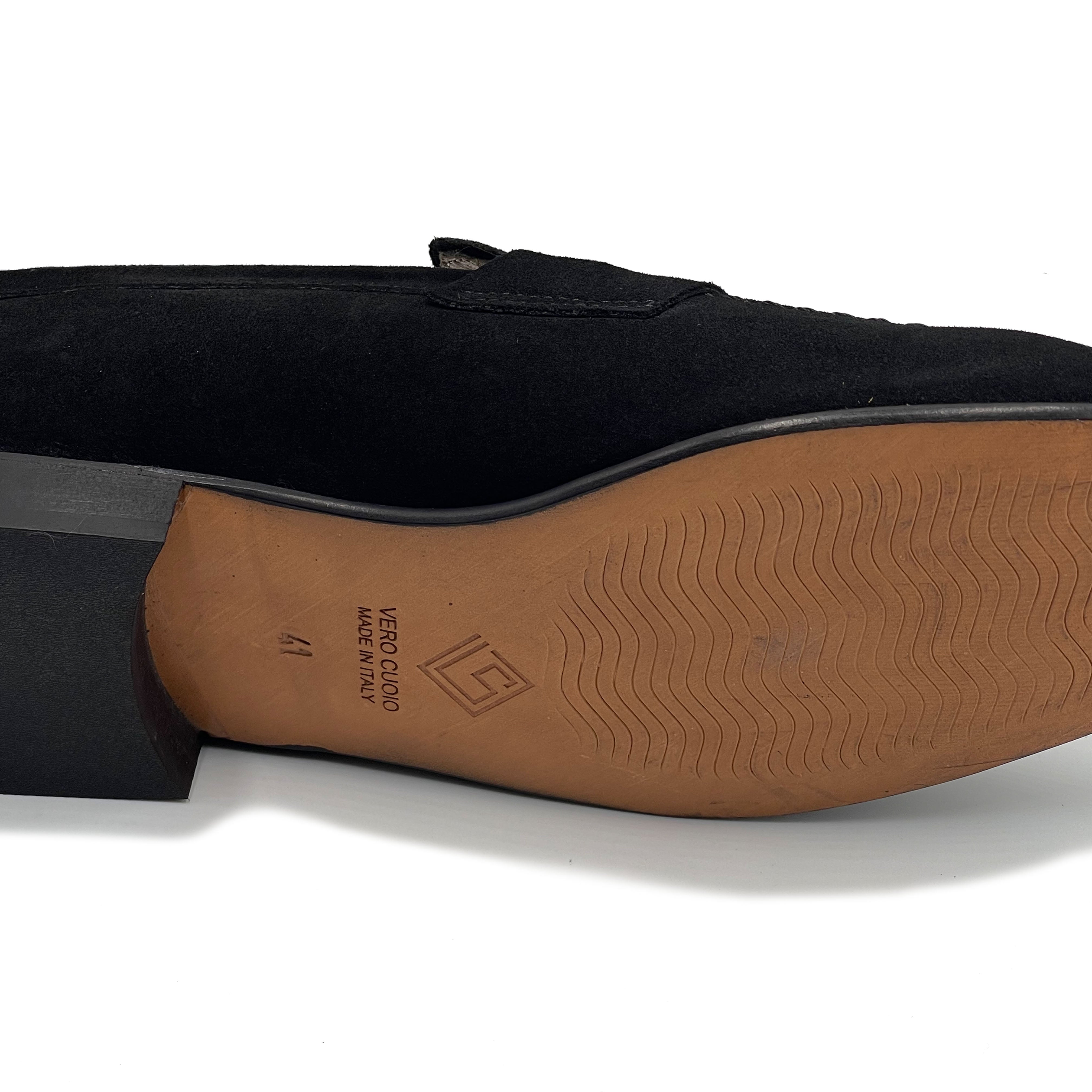 Il mocassino Collage lux è realizzato in morbido camoscio e con una suola in vero cuoio